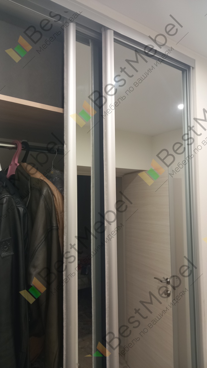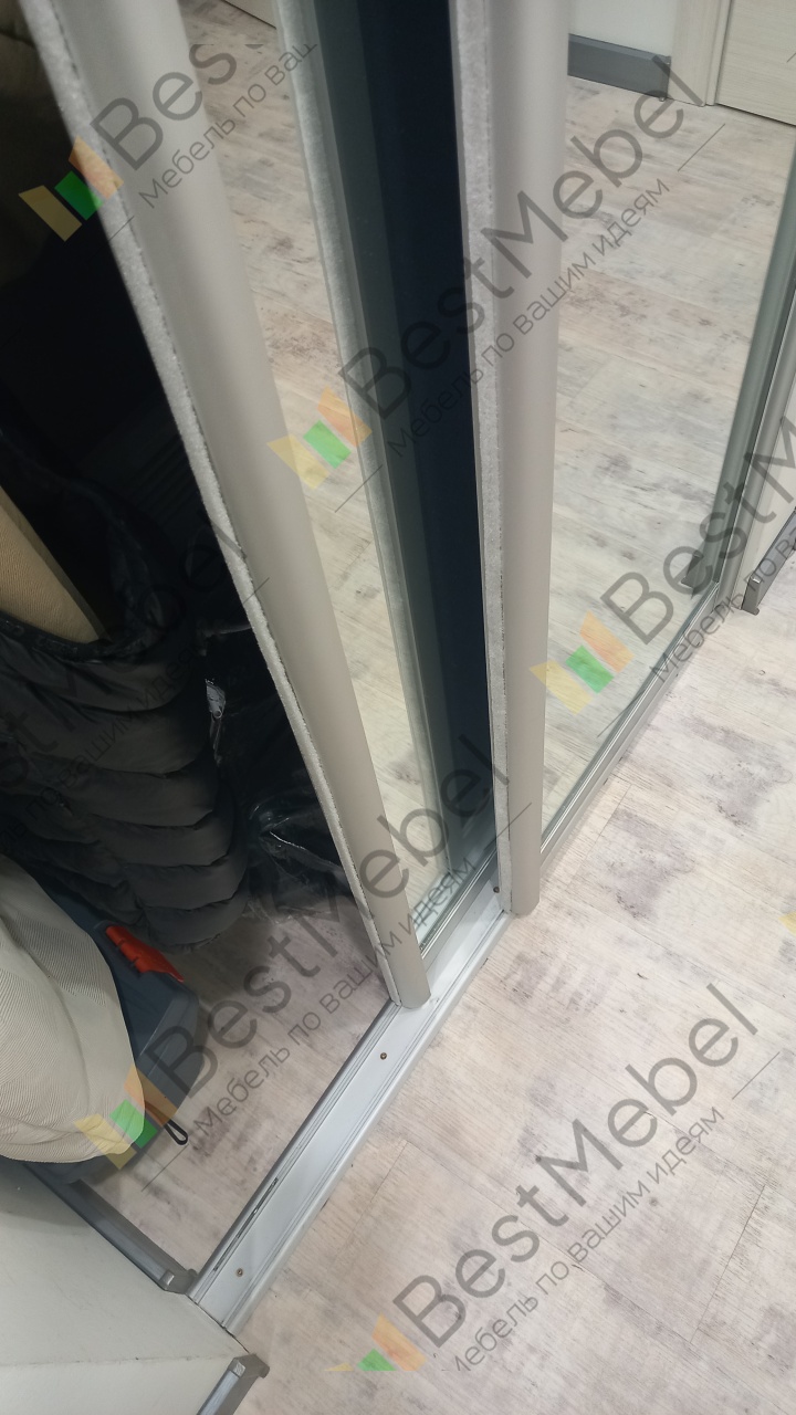 Заказ 00000531079, изделие Двери-купе Глейз 1 BMS (1000х2400х34)Шкаф делали сами по своим размерам, заполняя имеющийся угол. Надо было подобрать двери, чтобы идеально вписались в заданный проем, и чтобы было бюджетно. Все получилось: Двери-купе Глейз 1 BMS отличные, по размерам все идеально получилось подобрать. Наверно, только этот продавец и предлагает такую гибкую размерную сетку по приемлемым ценам. Сами двери добротные.