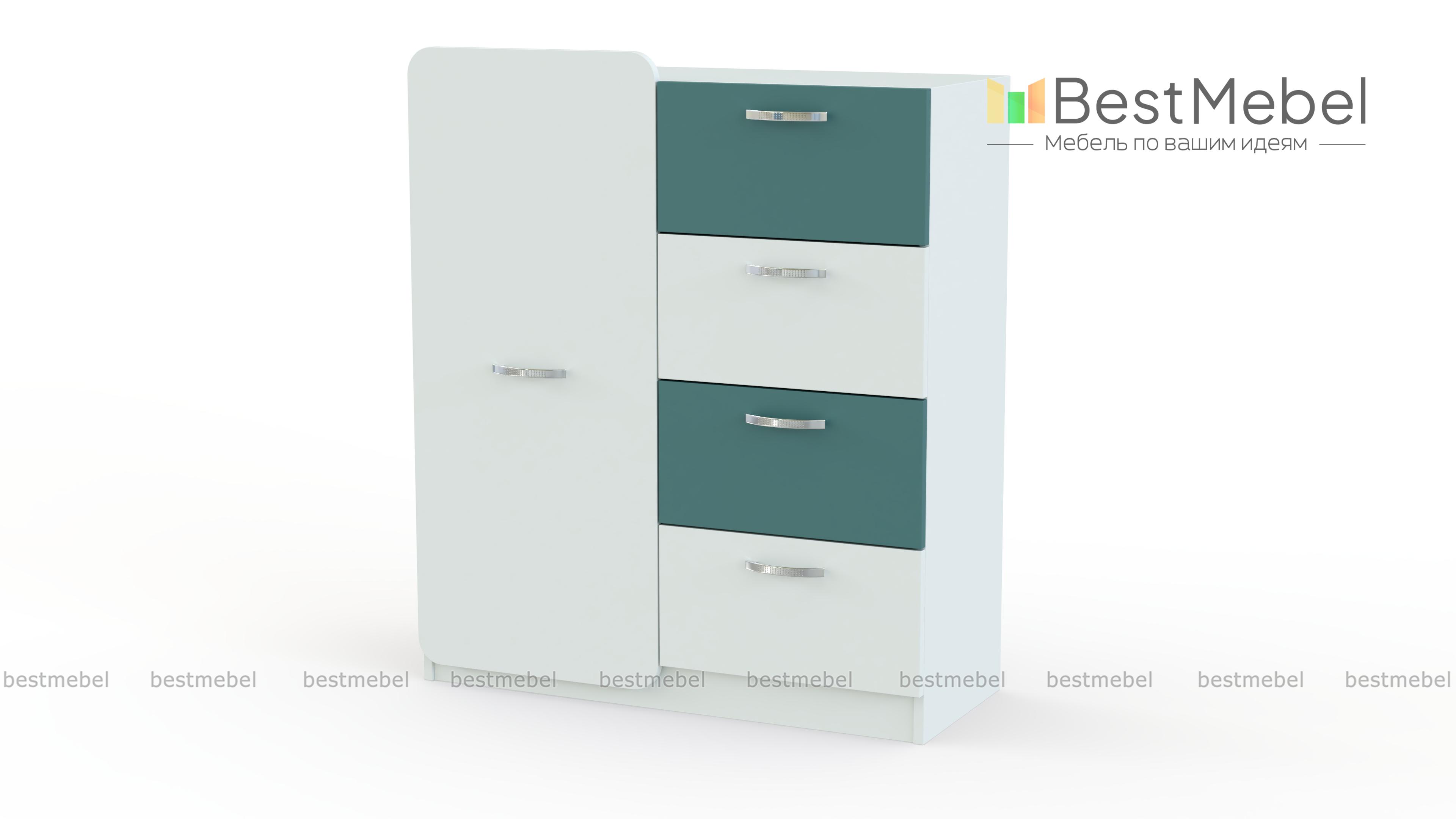Комод Джасмин BMS выполнен из экологичных материалов и гармонично дополнит интерьер современной детской комнаты. Компактная, но вместительная модель оборудована четырьмя выдвижными ящиками и распашным отделением, в которых разместятся белье, игрушки, аксессуары и прочие вещи ребенка. Фасады светлых тонов под массив дерева с цветными вставками декорированы крупными оригинальными ручками. Купить комод Джасмин BMS вы сможете в нашем интернет-магазине, подобрав оптимальный вариант расцветки.