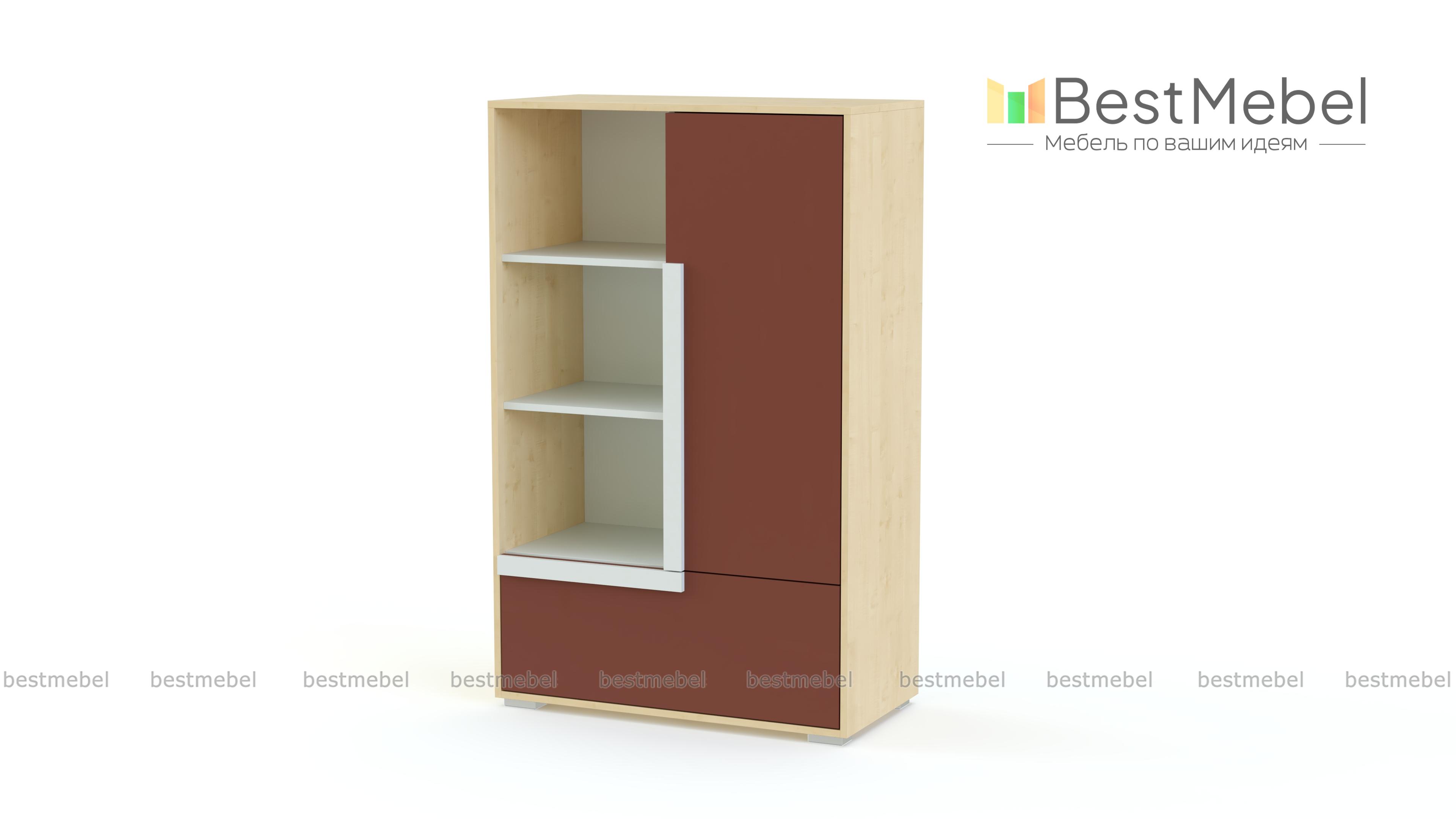 Комод с книжными полками Икар 12 BMS может стать полноценной заменой шкафу в интерьере современной молодежной комнаты. Комбинированная высокая модель оборудована распашным отделением, выдвижным ящиком в основании и открытыми книжными полками. Выполненный из безопасных материалов высокого качества, комод порадует подростков креативным дизайном и стильным сочетанием оттенков серого, древесных, белого и накладок-ручек на выбор. Купить комод с книжными полками Икар 12 BMS вы сможете в нашем интернет-магазине быстро и просто.