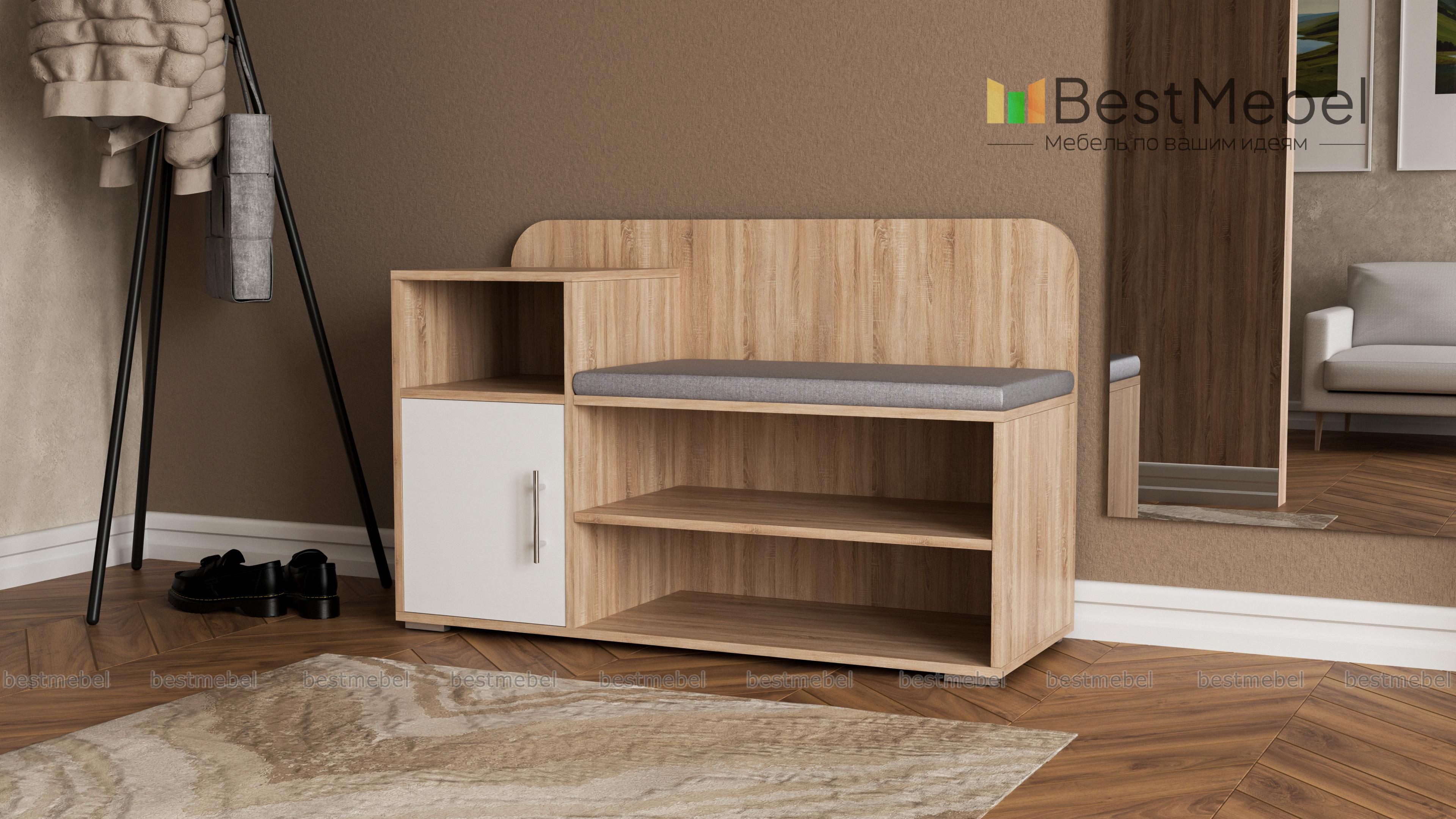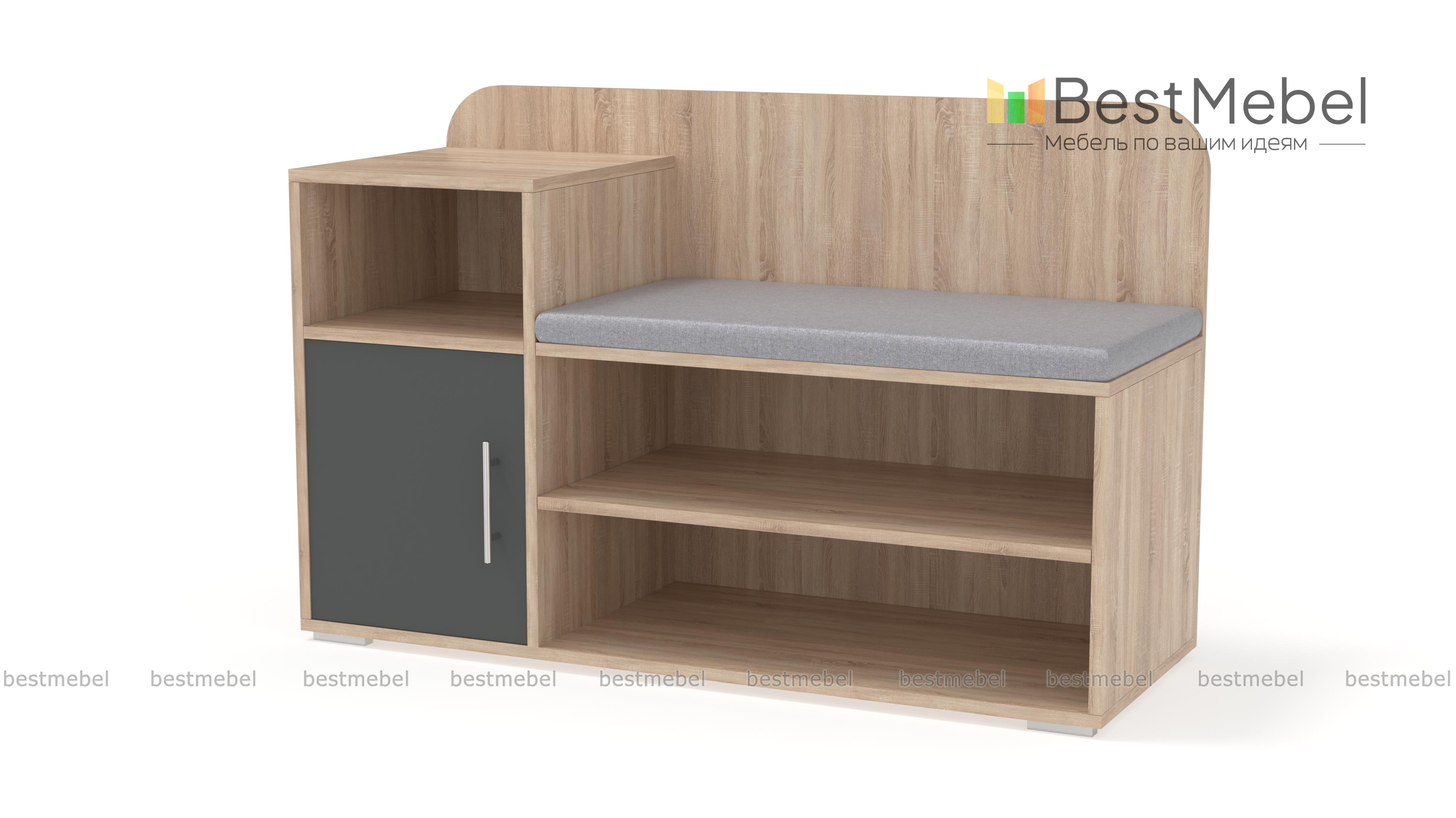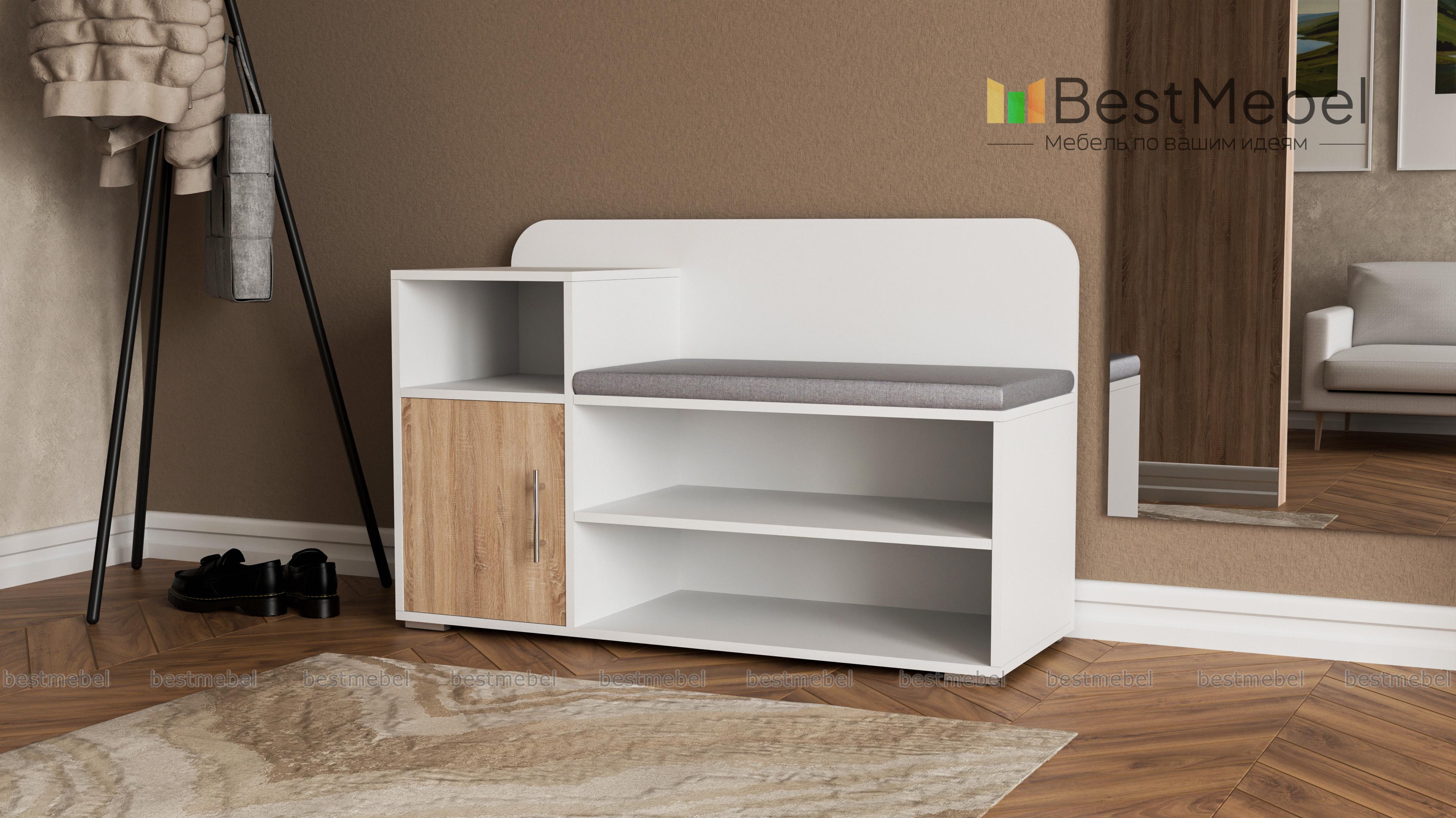 Обувница Лани BMS – экономичное решение для меблировки входной зоны, в котором сочетаются простота конструкции и функциональность. Комбинированная модель оборудована открытыми полками для хранения повседневной обуви, распашным шкафчиком и нишей для уходовых средств, комфортным сиденьем с мягкой тканевой обивкой и скругленной по углам спинкой. Легко вписаться в современный интерьер поможет актуальная черно-белая гамма. Купить обувницу Лани BMS приглашаем недорого в наш интернет-магазин.