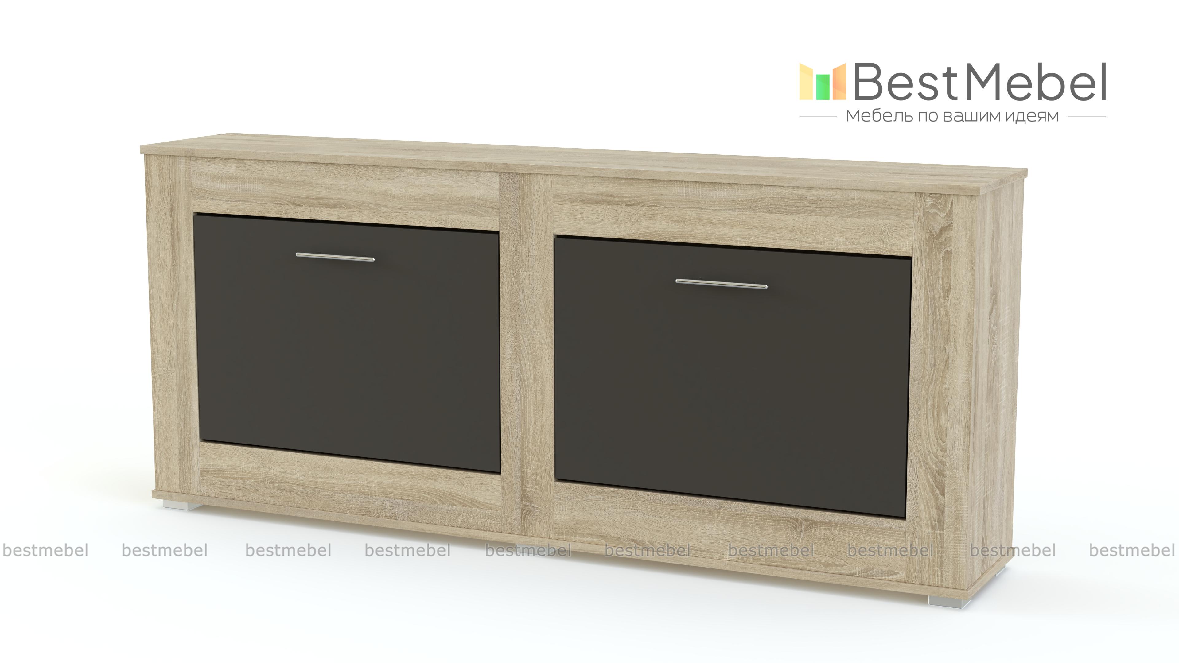 Обувница МБ 24.1 BMS создана для ярких и функциональных современных интерьеров. Широкая низкая тумба дополнит меблировку просторной прихожей и аккуратно разместит несколько пар сезонной обуви в двух откидных отделениях, а дополнительной рабочей поверхностью для аксессуаров станет столешница. В оформлении модели эффектно скомбинированы темные тона и цветной фасад. Купить обувницу МБ 24.1 BMS, подобрав все необходимые параметры, вы сможете в нашем интернет-магазине.