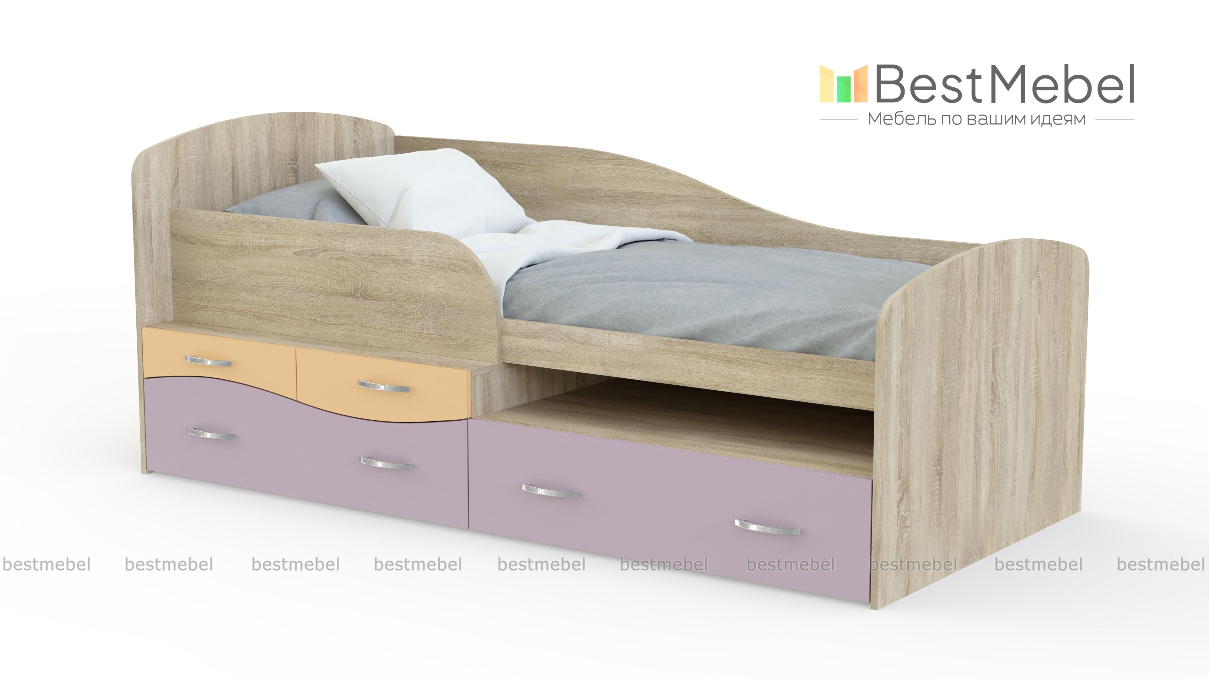 Детская кровать VMM 1 BMS отличается ярким и функциональным дизайном, который придется по душе детям и родителям. Модель выполнена в оптимальном для интерьера детской сочетании древесных тонов и цветных вставок из экологичных материалов. Конструкция представляет собой комбинацию комфортного спального места и высокого ступенчатого основания, включающего два больших и два малых выдвижных ящика. Безопасным пользование делают скругленные защитные бортики. Купить детскую кровать VMM 1 BMS приглашаем в наш интернет-магазин.