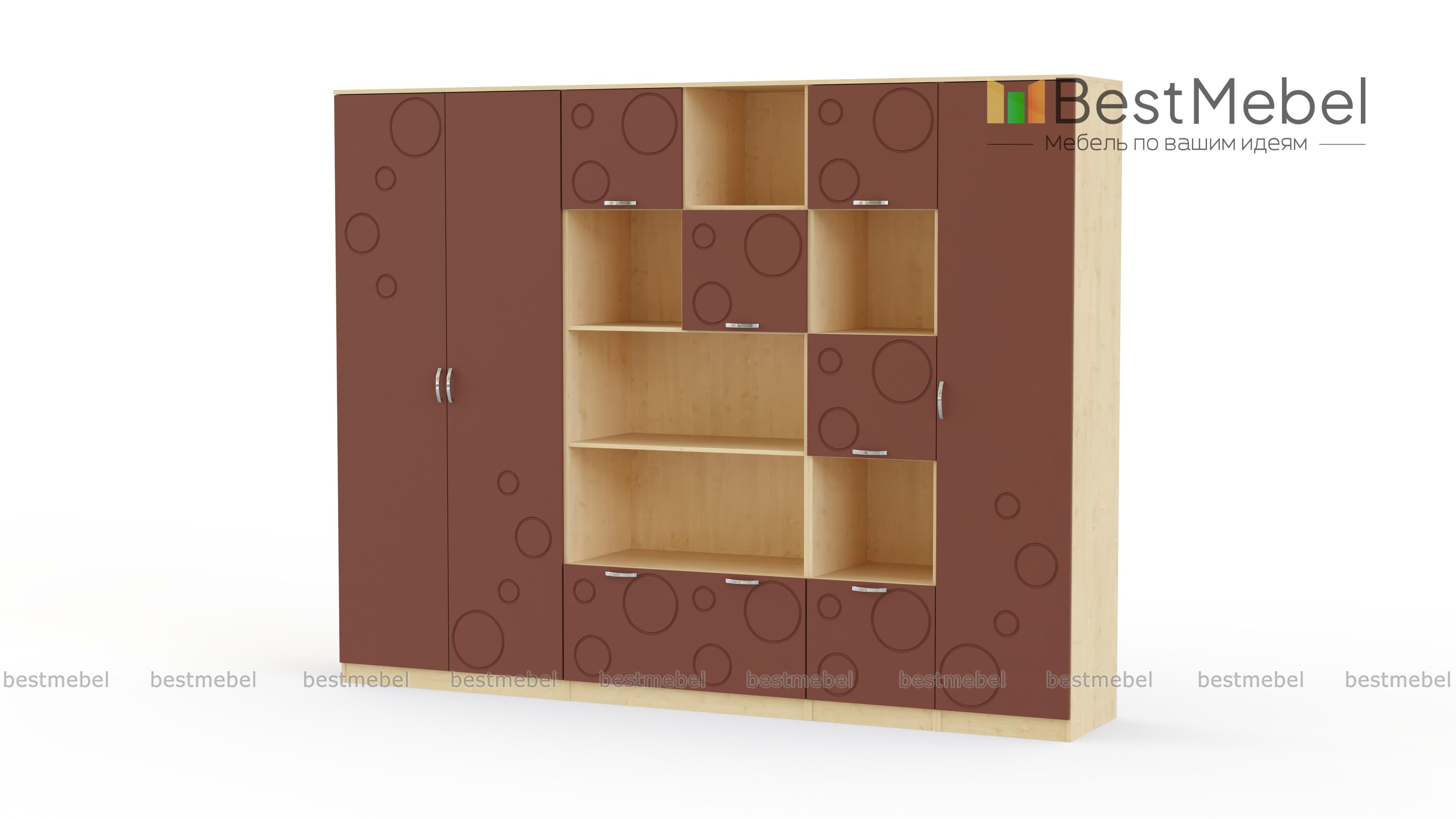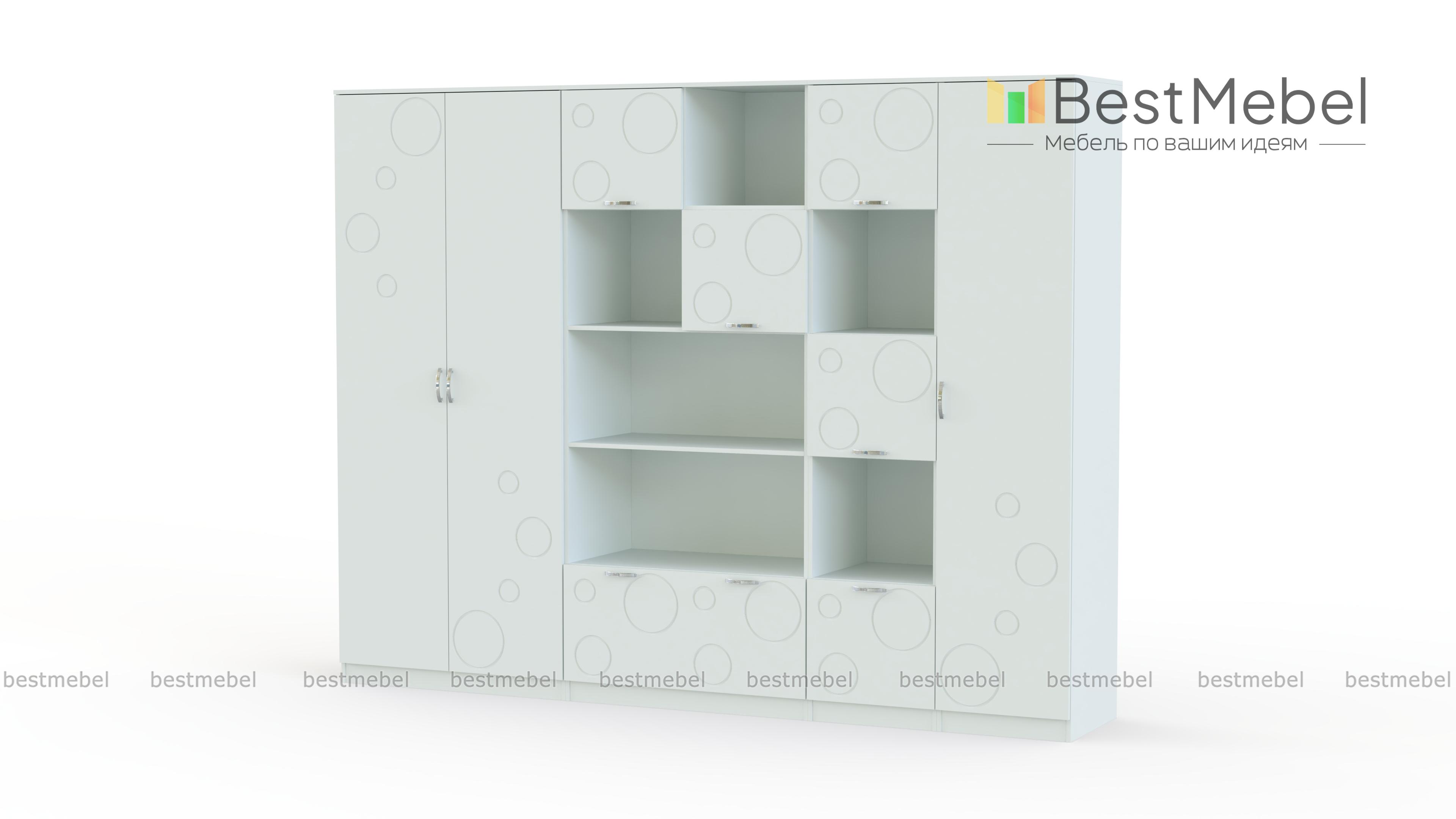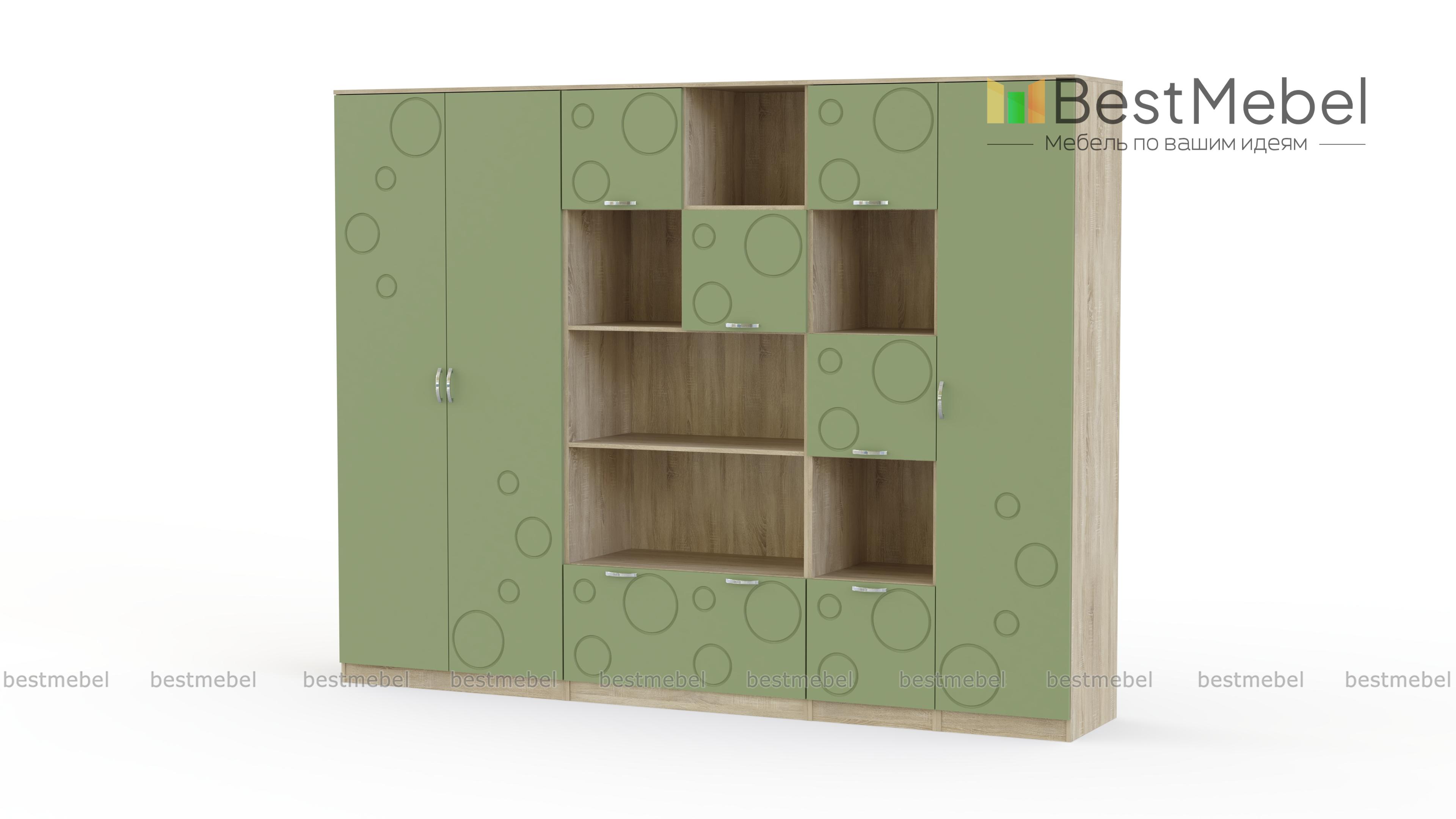Детская стенка Спринт 1-09 BMS – практичная модульная композиция, благодаря которой аккуратно разместятся предметы гардероба, книги, спортивные и школьные принадлежности ребенка. Лаконичная модель с цветными фасадами, декорированными неброским рисунком, гармонично дополнит современные интерьеры, проста в уходе и надежна. В комплект входят двухдверный платяной шкаф, бельевой пенал, комбинированный шкаф с полками и распашными отделениями и стеллаж с чередованием открытых и закрытых секций. Купить детскую стенку Спринт 1-09 BMS и создать на редкость функциональную комнату, вам поможет наш интернет-магазин.