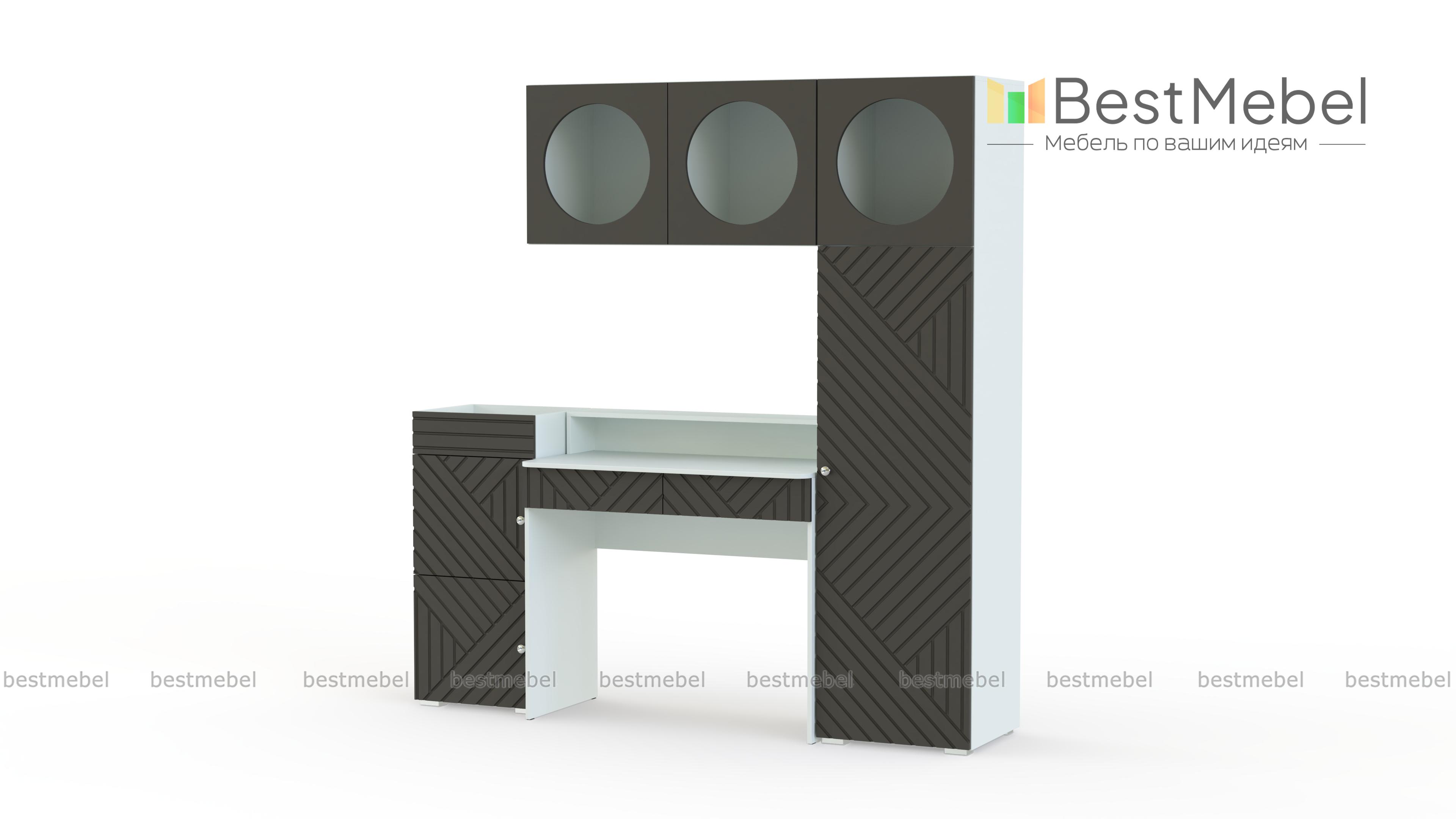Детская стенка Авелин 7 BMS позволит на небольшом пространстве обустроить рабочую зону. Среди модулей комплекта компьютерный столик с двумя ящиками, приставная тумба с дверцами, шкаф-пенал и навесная книжная полка. Лаконичные формы сочетаются с оригинальным оформлением фасадов, украшенных геометрическим рельефом, и необычным решением круглых полок. Купить детскую стенку Авелин 7 BMS вы сможете в нашем интернет-магазине, подобрав размеры и оптимальный цветовой вариант.