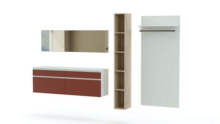 Прихожая Tando 2 BMS – это ультрасовременный дизайн, высокая функциональность и эффектный контраст нейтральных и насыщенных оттенков. Модульная композиция, включающая в себя навесные элементы, станет нестандартным решением для организации входной зоны как в просторных, так и небольших помещениях. В комплект входят большое зеркало, широкая тумба с ящиками разной высоты, мини-стеллаж и панно с полкой под головные уборы и подвесной штангой. Купить прихожую Tando 2 BMS вы сможете по выгодной цене в нашем интернет-магазине.