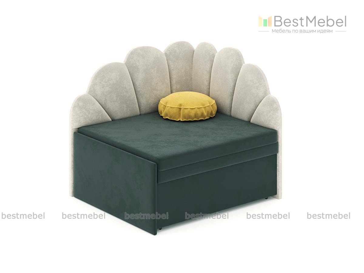 Диван Лайми 4 BMS станет ярким акцентом в интерьере детской комнаты или небольшой гостиной. Мини-диван в мягкой обивке трендовых оттенков оборудован фигурными спинкой и подлокотником в форме цветка. Модель с удобным для отдыха сиденьем, дополненным декоративной подушкой, при необходимости легко трансформируется в кровать с помощью классического выкатного механизма, дополнительная подушка находится в ящике. Купить диван Лайми 4 BMS и создать уютный и функциональный интерьер вам всегда поможет наш  интернет-магазин.