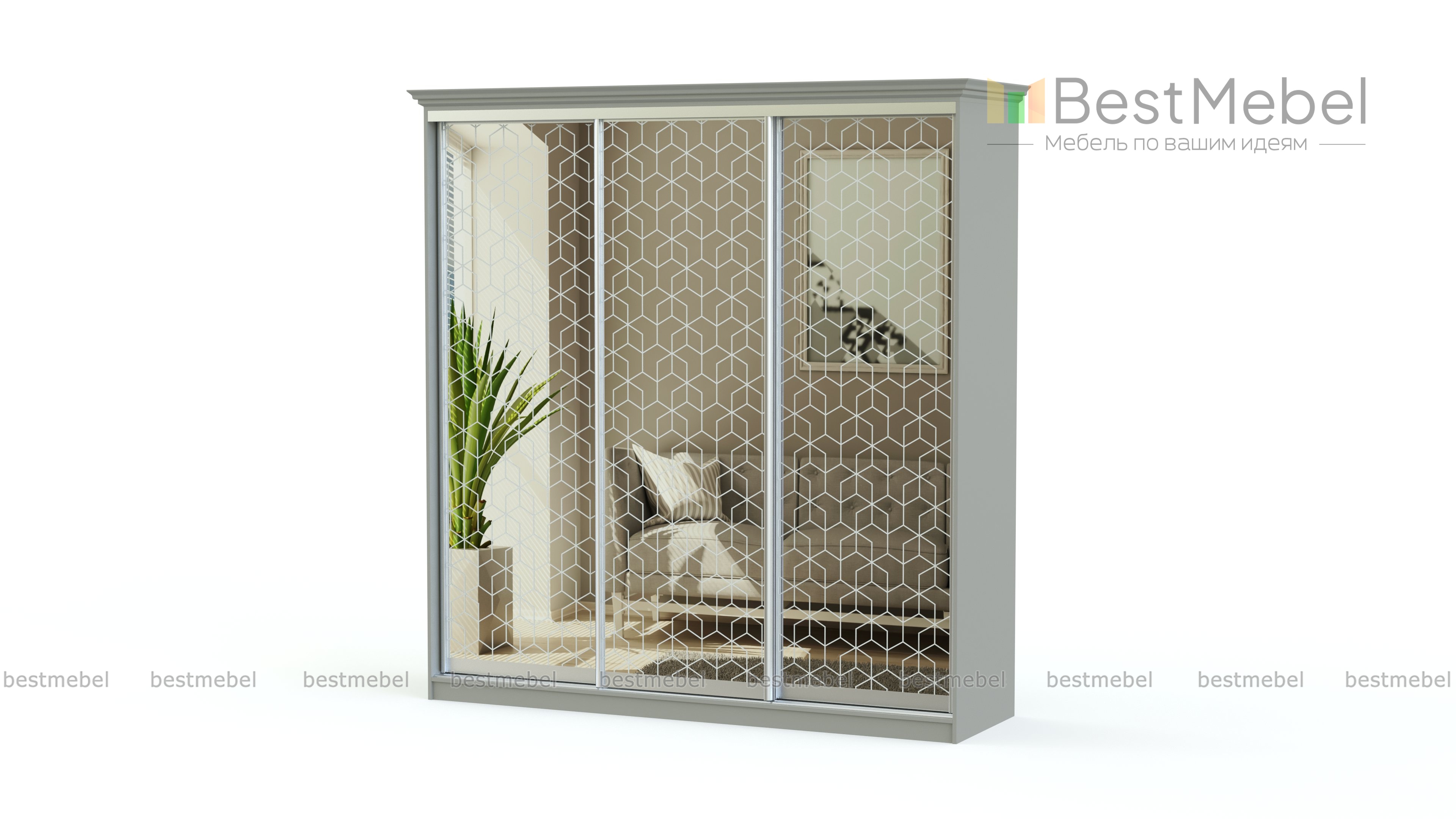 Шкаф-купе Инесса 2 BMS, выполненный в изящном классическом стиле, украсит интерьер спальни, гостиной или прихожей. Карниз трехдверного шкафа добавляет изящности модели, а на зеркальный фасад нанесен ажурный пескоструйный узор. Для удобного хранения одежды, обуви и постельных принадлежностей внутреннее отделение оборудовано просторными полками и штангой. Купить шкаф-купе Инесса 2 BMS вы сможете в нашем интернет-магазине, подобрав оптимальные размеры и цвет по каталогу.