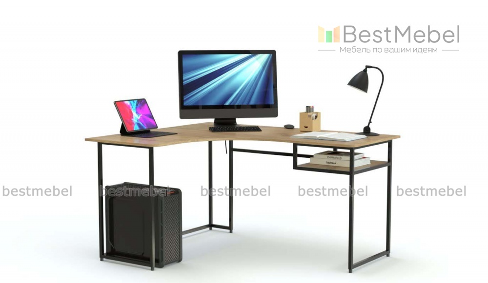 Стол компьютерный Виктор 3 BMS – это угловая модель с эргономично вырезанной, просторной столешницей. Дополненный открытой подвесной полкой для бумаг, стол поможет разместить все необходимое для комфортной работы или учебы. Поверхности из ЛДСП в крафтовых древесных тонах скомбинированы с прочным и устойчивым, но при этом легким металлическим каркасом. Купить стол компьютерный Виктор 3 BMS и эффективно использовать пространство лофта вам поможет наш интернет-магазин.