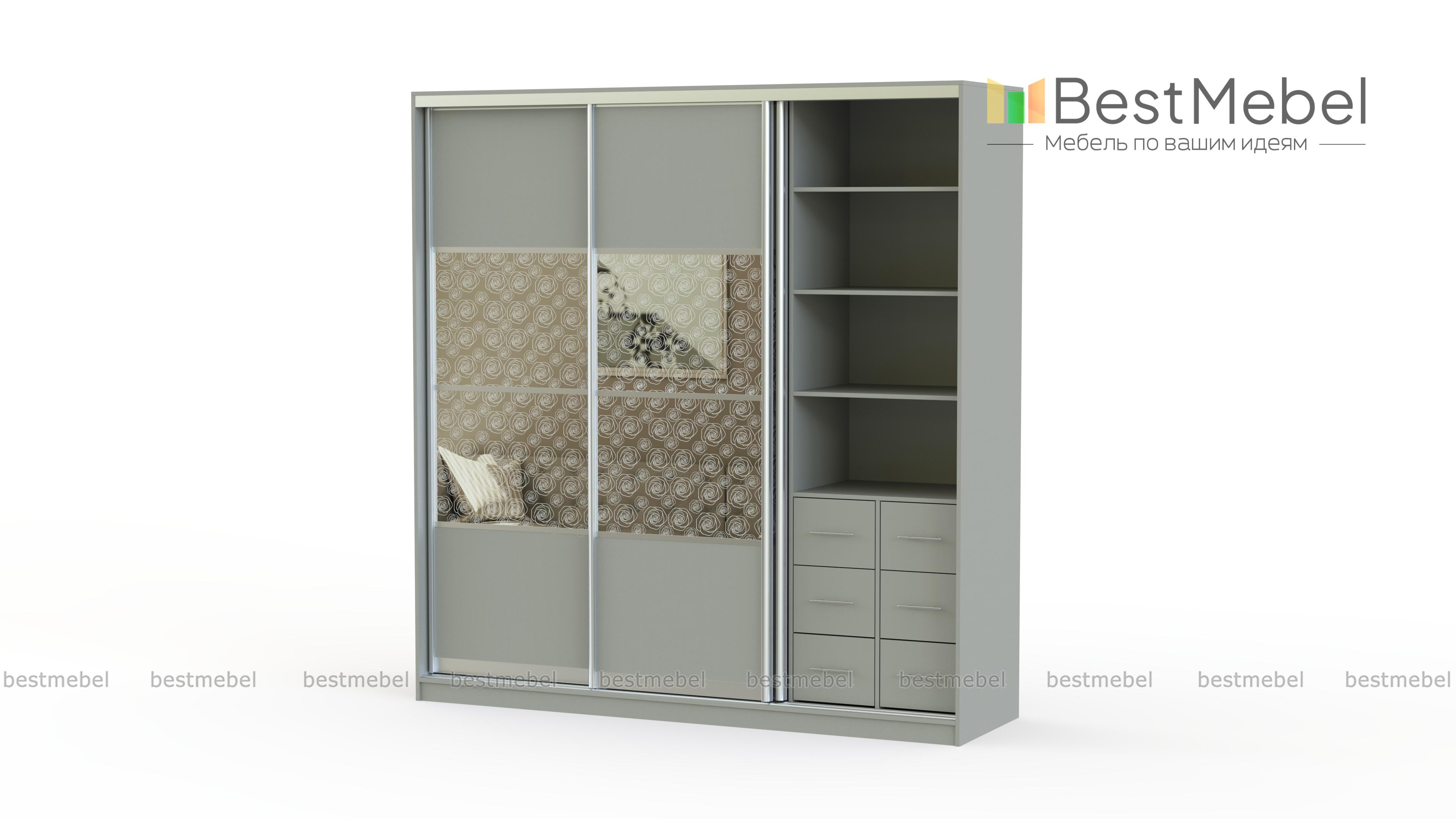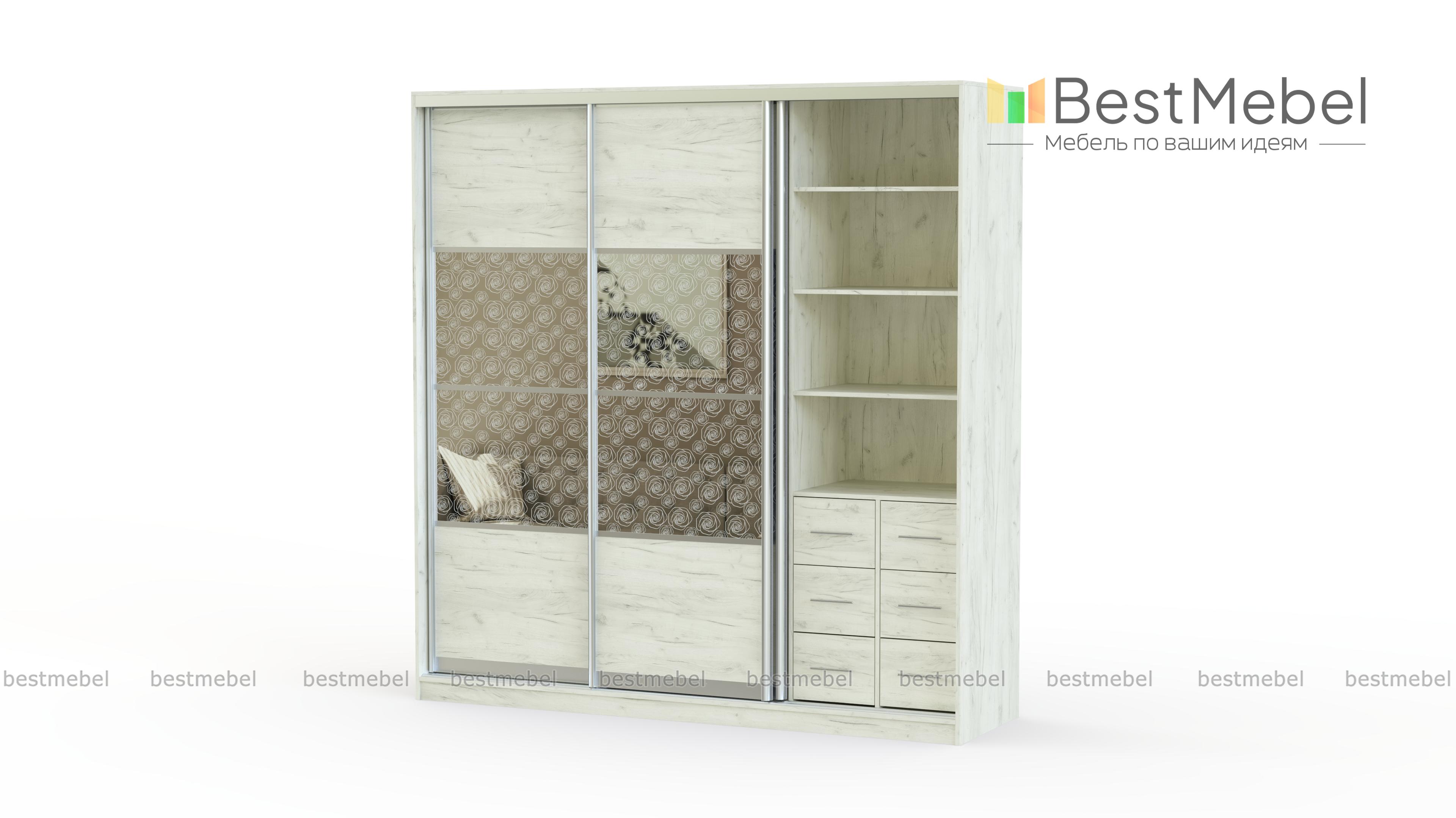 Шкаф-купе Роза-3 BMS – великолепная серийная продукция. Трёхстворчатый предмет мебели имеет в своём наполнении богатую компоновку, сочетающую в себе выдвижные миниатюрные ящики, полки, штангу для плечиков. Всё это позволяет хозяйке организовать систематизированное хранение повседневной и деловой одежды, постельного белья, аксессуаров, обуви. Дверки изделия легко и беспрепятственно ездят по своим направляющим, обеспечивая отличный доступ к содержимому. Более того, очаровательные вставки с узорами являются основным декорированием модели. А вместе с выдержанным однотонным оттенком, они буквально излучают тепло и уют. Купить шкаф-купе Роза-3 BMS можно по низкой стоимости и с учётом бесплатной доставки на нашем сайте.