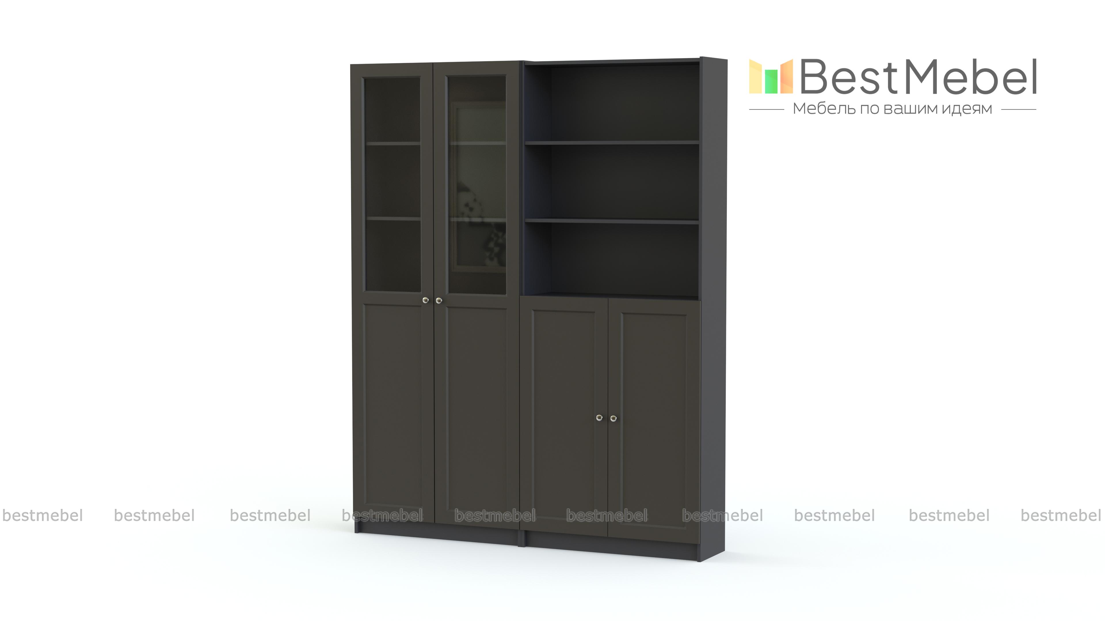 Шкаф Билли Оксберг Billy Oxberg 27 состоит из двух комбнированных распашных шкафов – с застекленными и открытыми полками. За глухими дверцами в нижней части будут скрыты разнообразные бытовые вещи, бумаги и книги, и комната примет аккуратный вид. Композиция классического дизайна в популярном светлом оттенке универсальна и дает много возможностей для экспериментов с цветом. Купить шкаф Билли Оксберг Billy Oxberg 27 по доступной цене вы сможете в нашем интернет-магазине. Выбирайте мебель в стиле IKEA (ИКЕА) от производителя BestMebelShop!