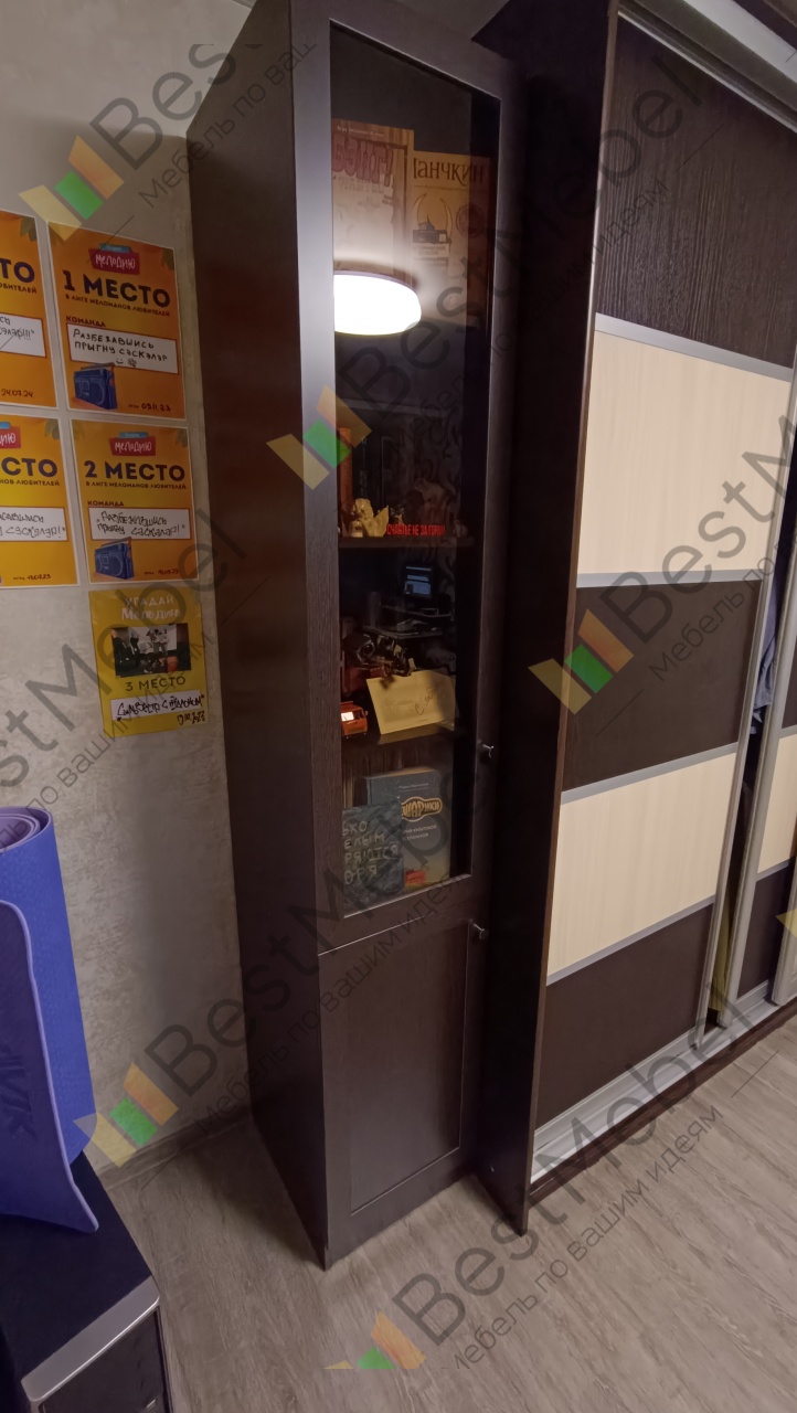 Книжный шкаф купила в дополнение к распашному шкафу. Вписался фантастически! Немного напутала с расцветкой, но даже лучше стало) Всем советую, спасибо магазину Бестмебельшоп за быстрое производство и доставку. Всё детали в комплекте, без нареканий. Супер!