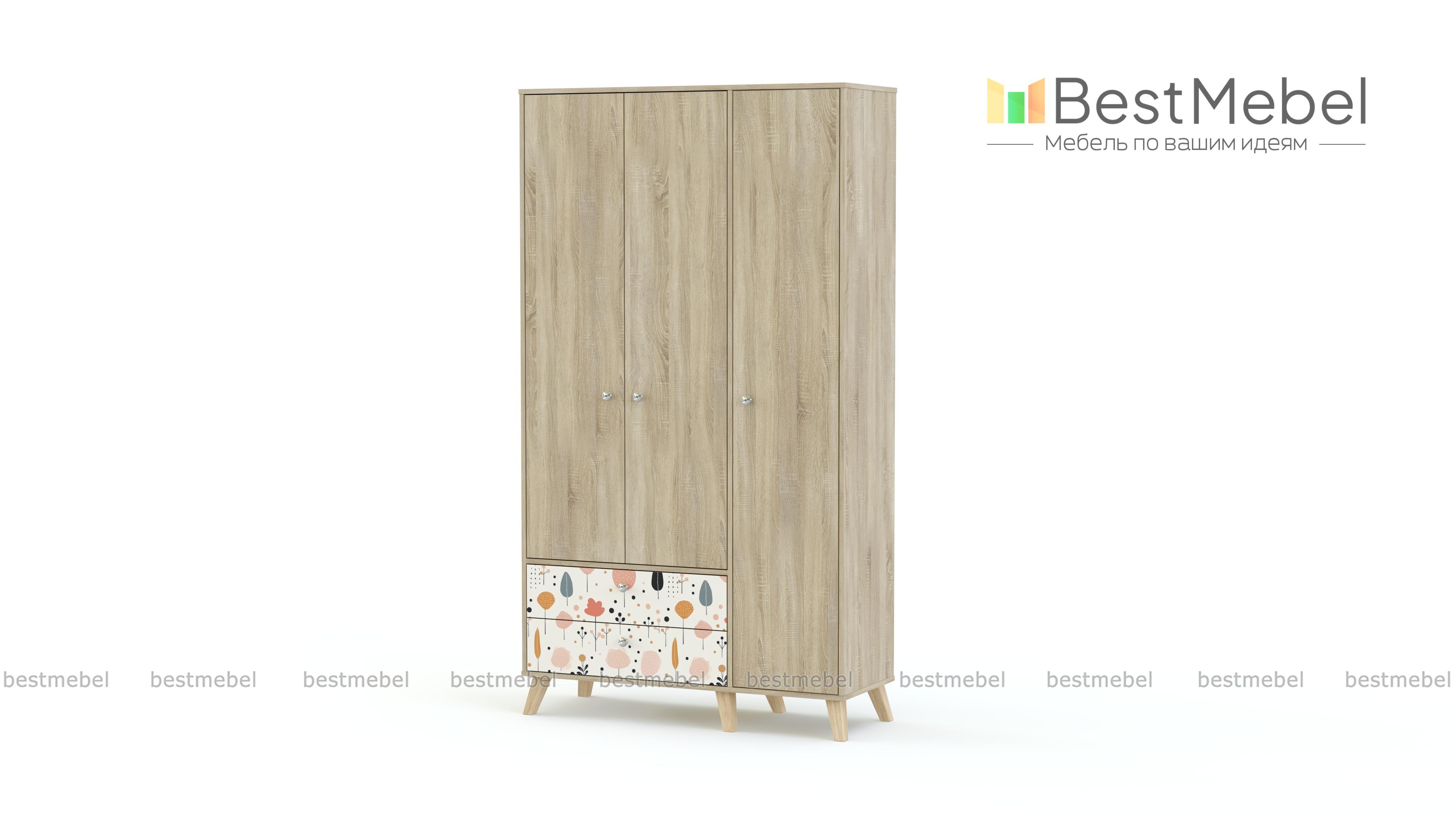 Шкаф распашной Эльза 3 BMS поможет удобно и эстетично организовать хранение в детской. Разложить вещи по местам позволят закрытые секции, укомплектованные полками и штангой, а также два просторных выдвижных ящика. Трехдверный шкаф с высокими ножками выполнен в нейтральных теплых тонах из ламинированной ДСП, для декора использован стойкий рисунок-фотопечать. Купить шкаф распашной Эльза 3 BMS вы всегда сможете в нашем интернет-магазине, по желанию изменив цвет и размеры.