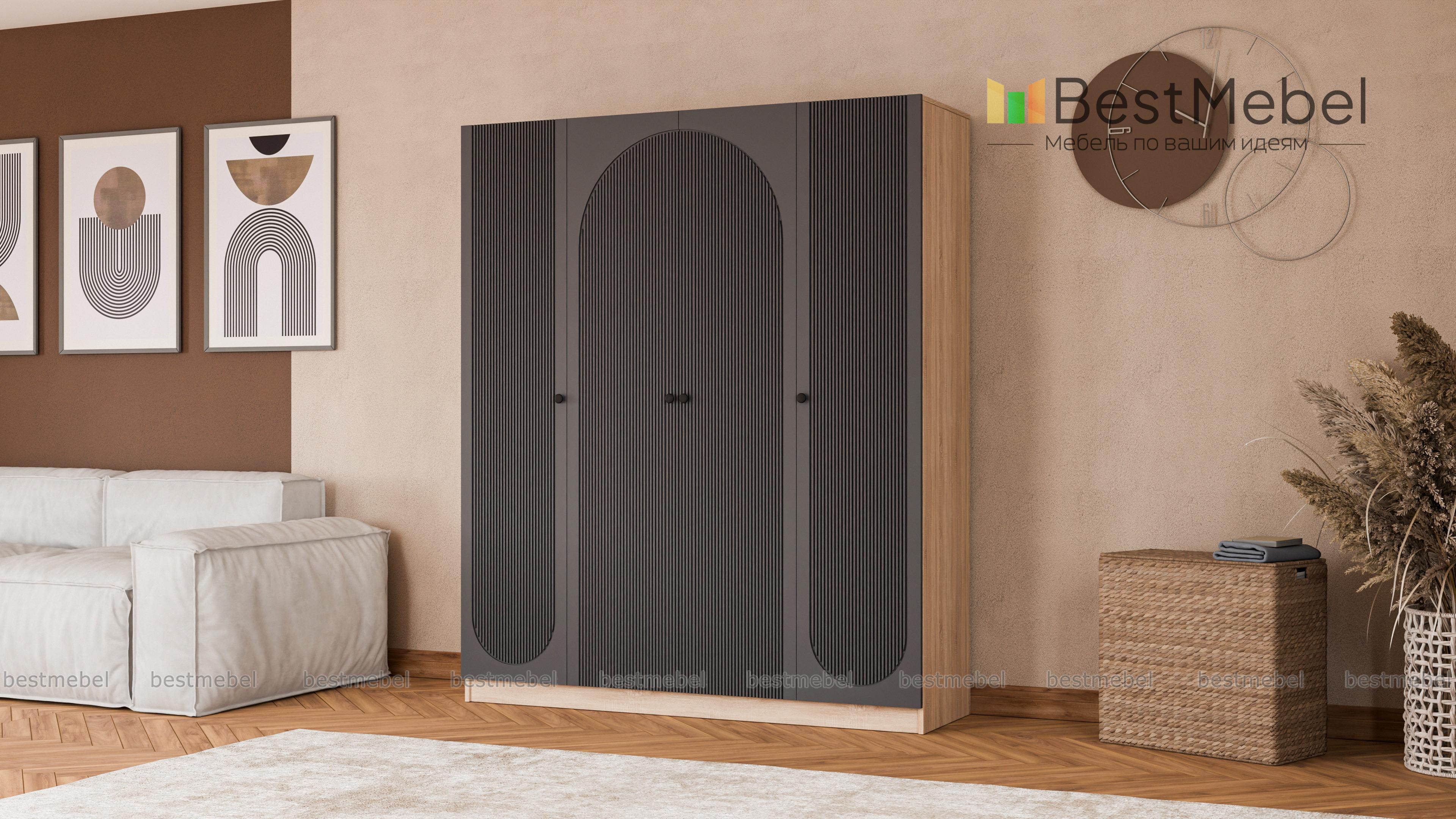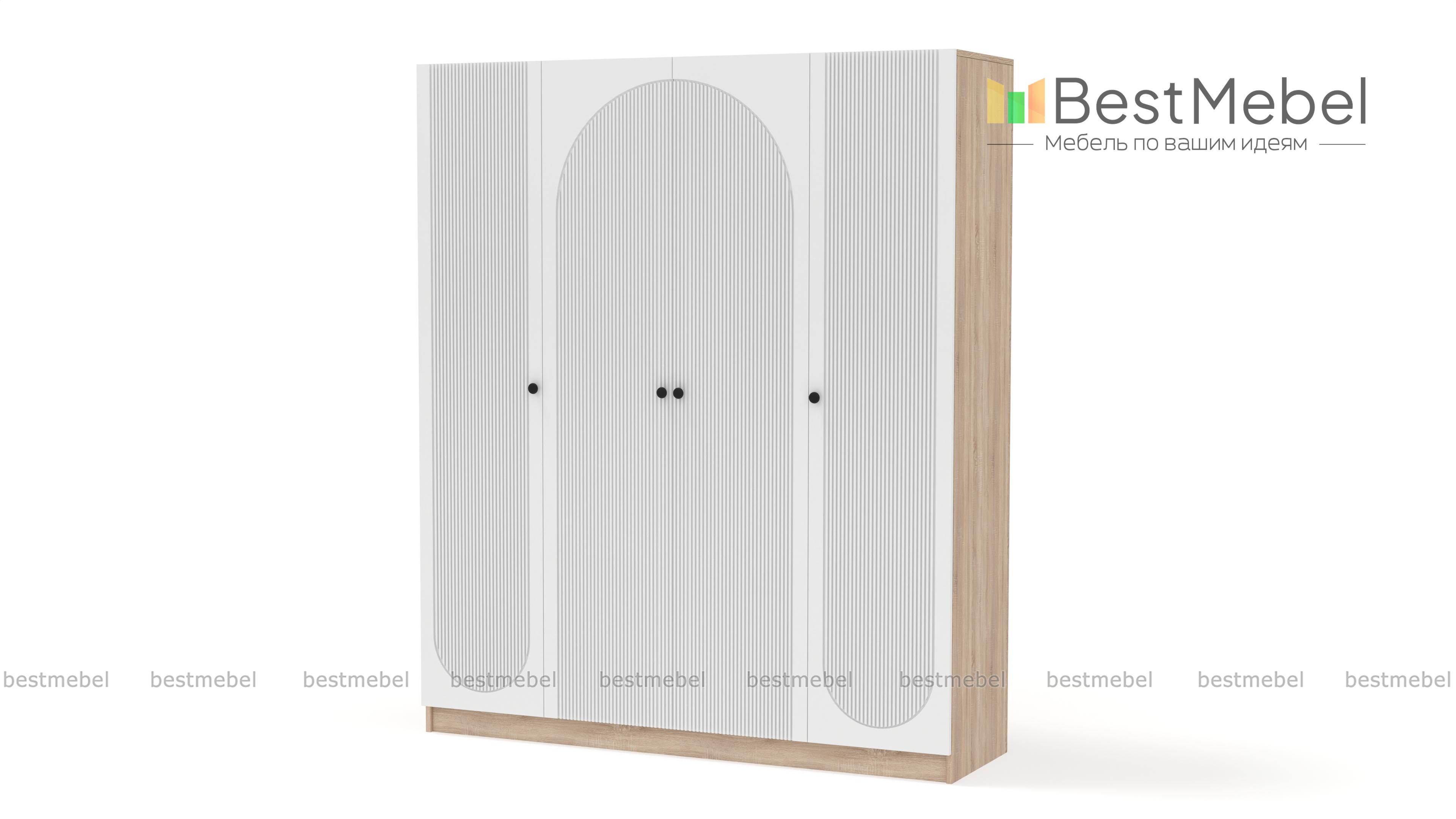 Шкаф распашной Вивьен 9 BMS — современная модель со стильной отделкой фасада. Фактурный рисунок превращает четырехдверный гардероб в элемент дизайна спальни, комнаты ребенка или прихожей. Распашные дверцы с круглыми ручками открывают доступ к просторным внутренним отделениям, предназначенным для хранения одежды и обуви, аксессуаров и постельного белья. Купить шкаф распашной Вивьен 9 BMS вы сможете в нашем интернет-магазине, подобрав размеры, цвет и наполнение.