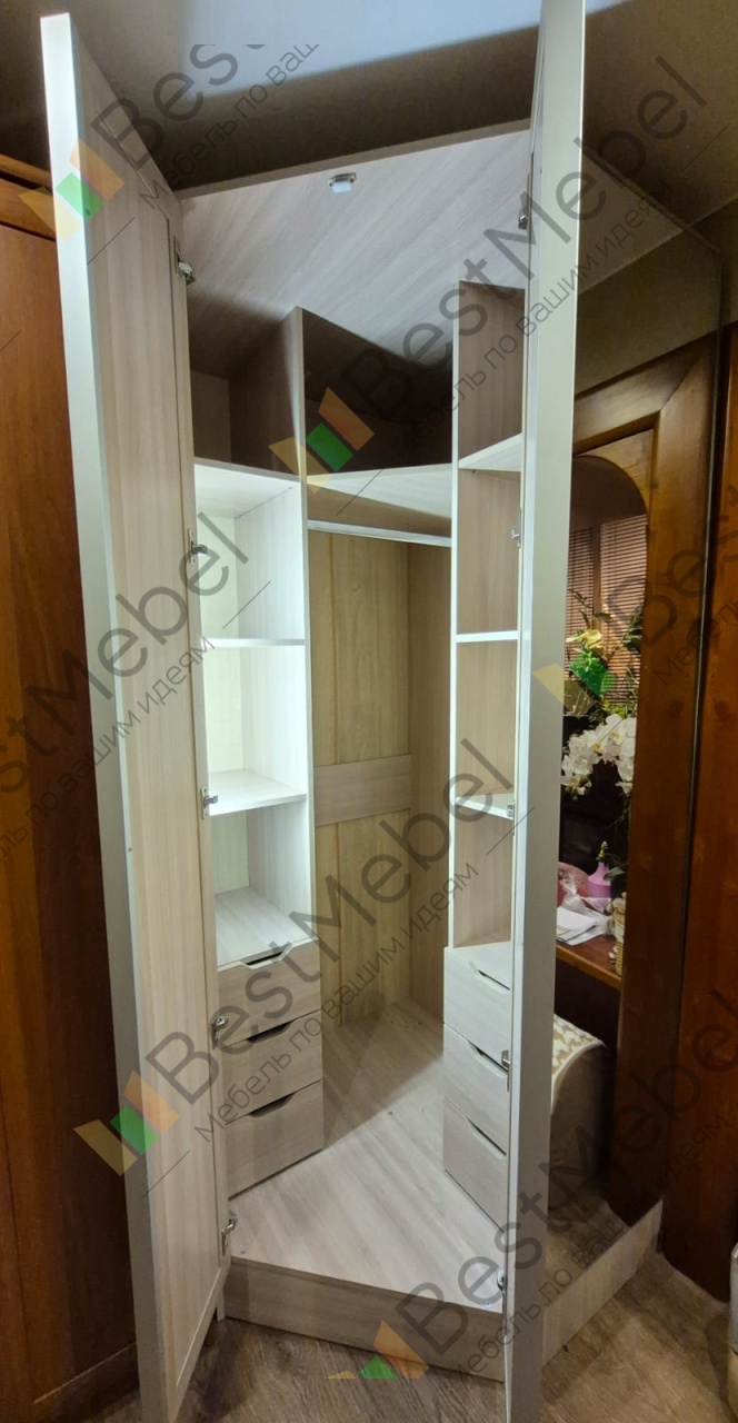 ШКАФ удобный для вещей (Шкаф угловой У-3 BMS), сделали шкаф под мои размеры, как я хотела, зеркало красивое ,хорошего качества. СПАСИБО.