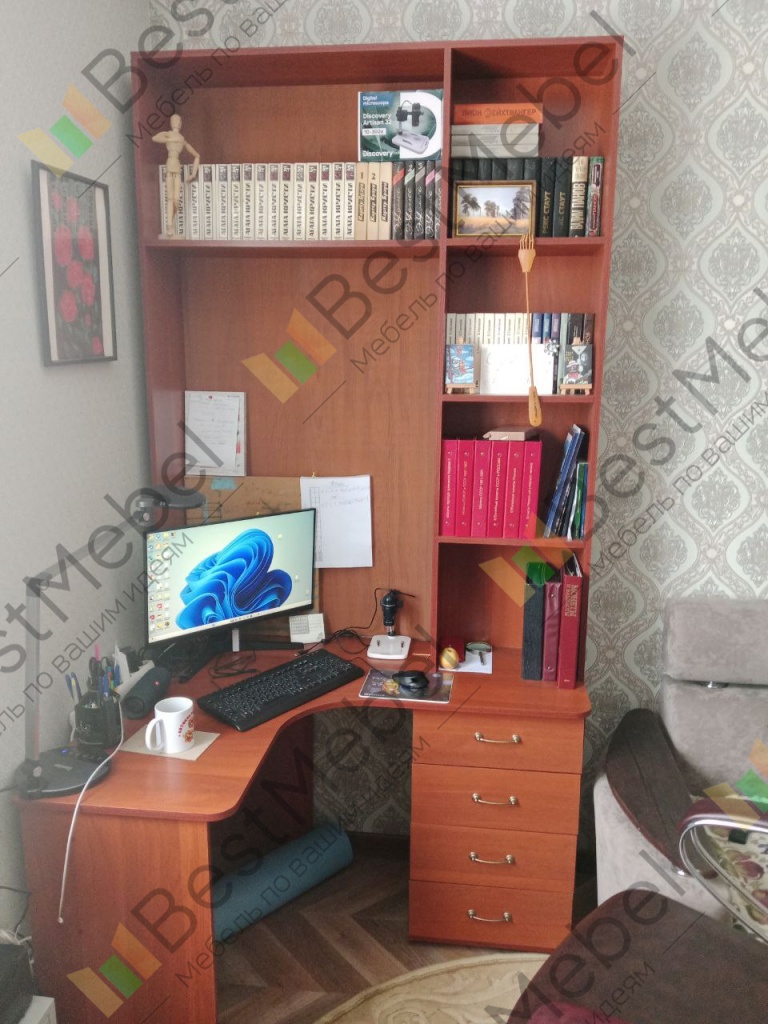 Приобрел стол 52.15 BMS и решил сразу добавить к нему надстройку. Остановился на этой модели. По моим размерам получилось вот такое шикарное изделие. Прелесть данного магазина-изготовление по индивидуальным размерам плюс цвет и фурнитура на выбор. Качество, удобство сборки и доставка на высоте! Молодцы, спасибо за работу! Покупкой очень доволен-теперь это мой уютный уголок для души.