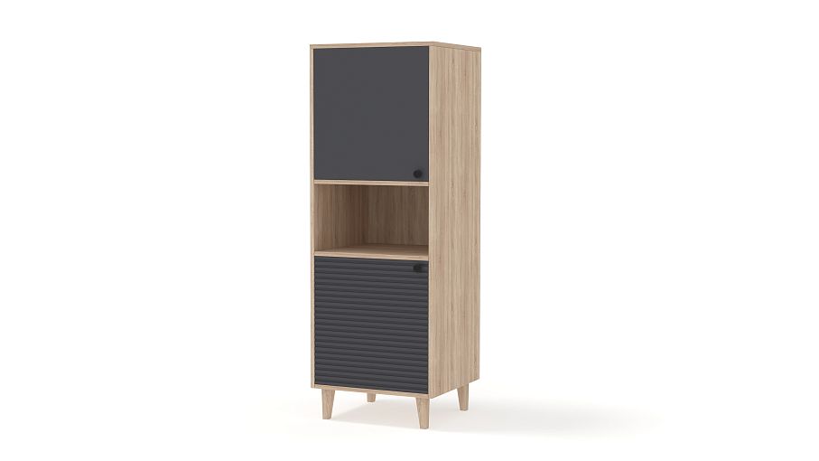Стеллаж Брукс 2 BMS прекрасно смотрится с другими предметами серии и отдельно. Небольшой и вместительный, стеллаж сохранит в порядке книги, учебные пособия и личные вещи. Два закрытых отделения — с гладкой дверцей и рифленой, разделены просторной нишей, в которой будет на виду самое необходимое, устойчивость конструкции придают высокие ножки оттенка светлого дерева. Купить стеллаж Брукс 2 BMS вы всегда сможете в нашем интернет-магазине, по желанию изменив цвет и размеры.
