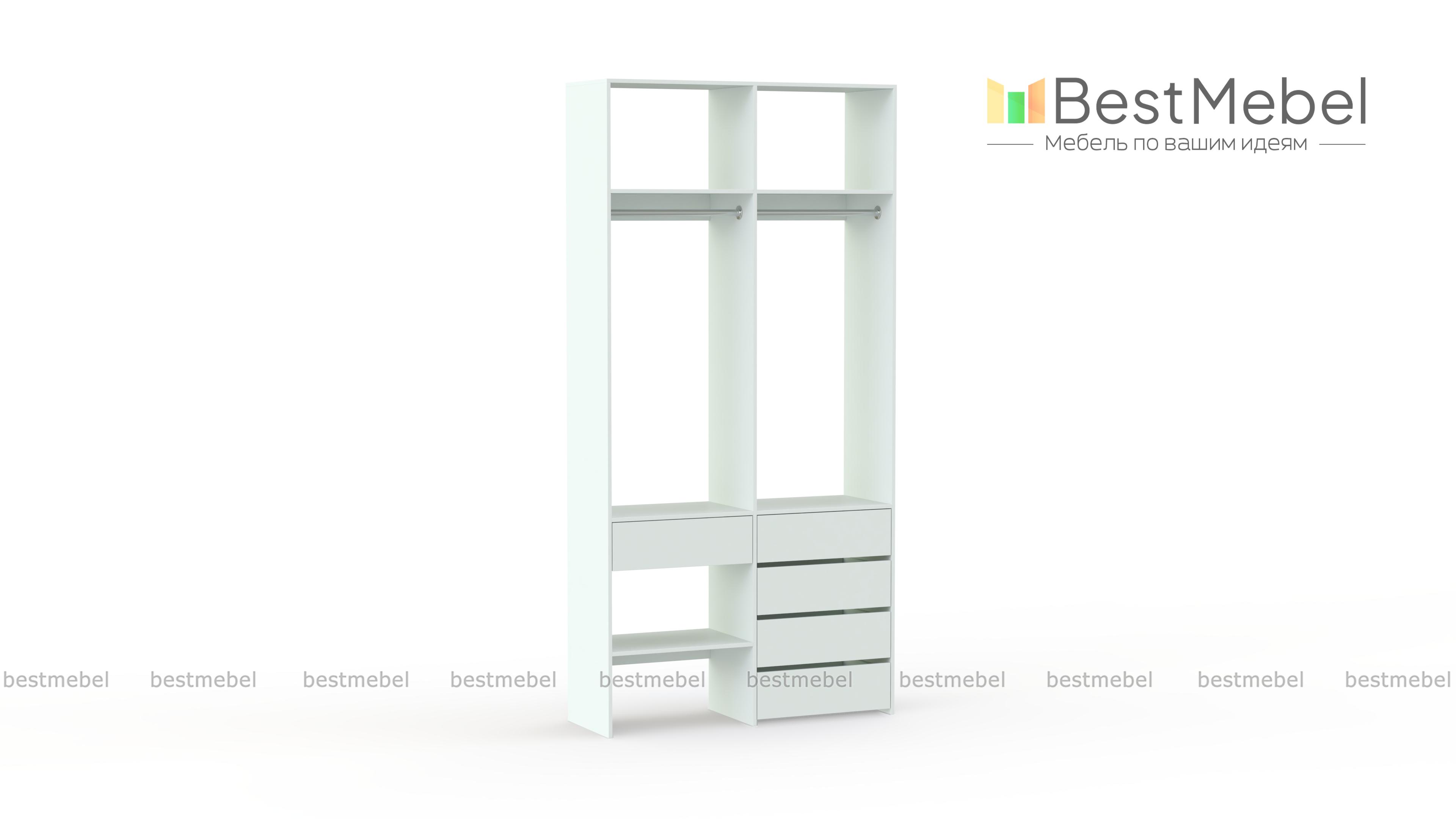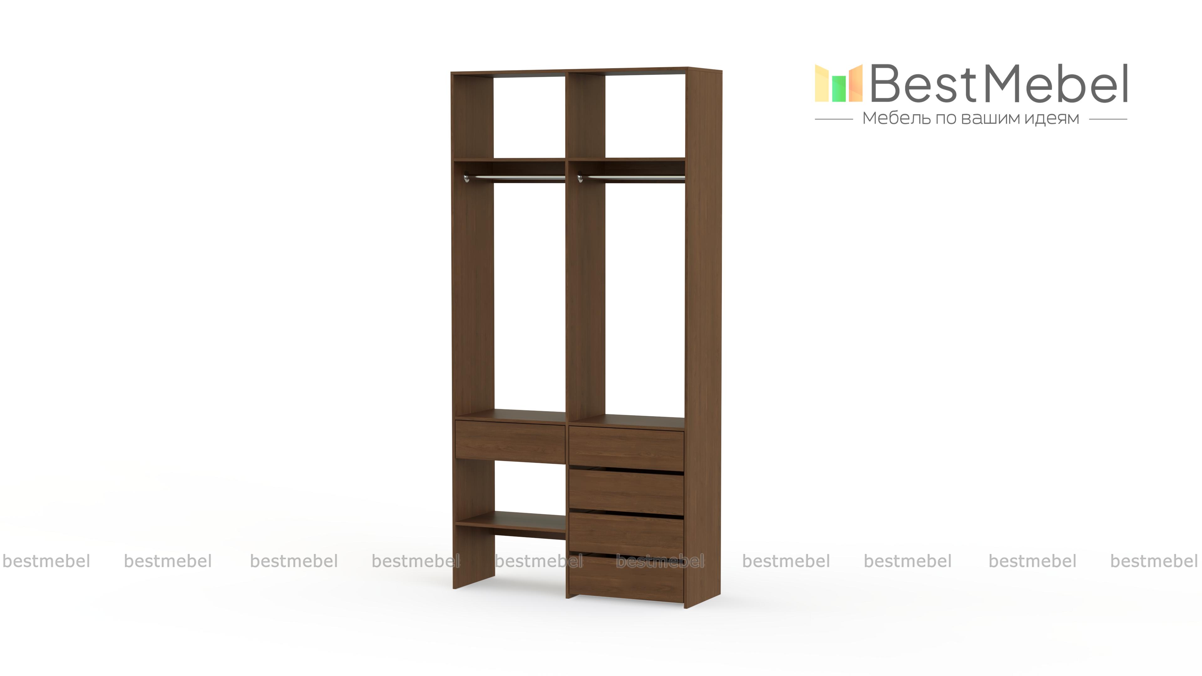 Стеллаж для одежды Мирта 46 BMS — стильный и функциональный, имеет удобную конфигурацию. Две штанги, полки на разной высоте и пять выдвижных ящиков максимально эффективно используют небольшое пространство. Двухсекционный стеллаж из прочной ламинированной ДСП прекрасно подходит для малогабаритных помещений, легко сохраняя порядок. Купить стеллаж для одежды Мирта 46 BMS в необходимом размере и любом оттенке из нашего каталога вы сможете на сайте интернет-магазина.