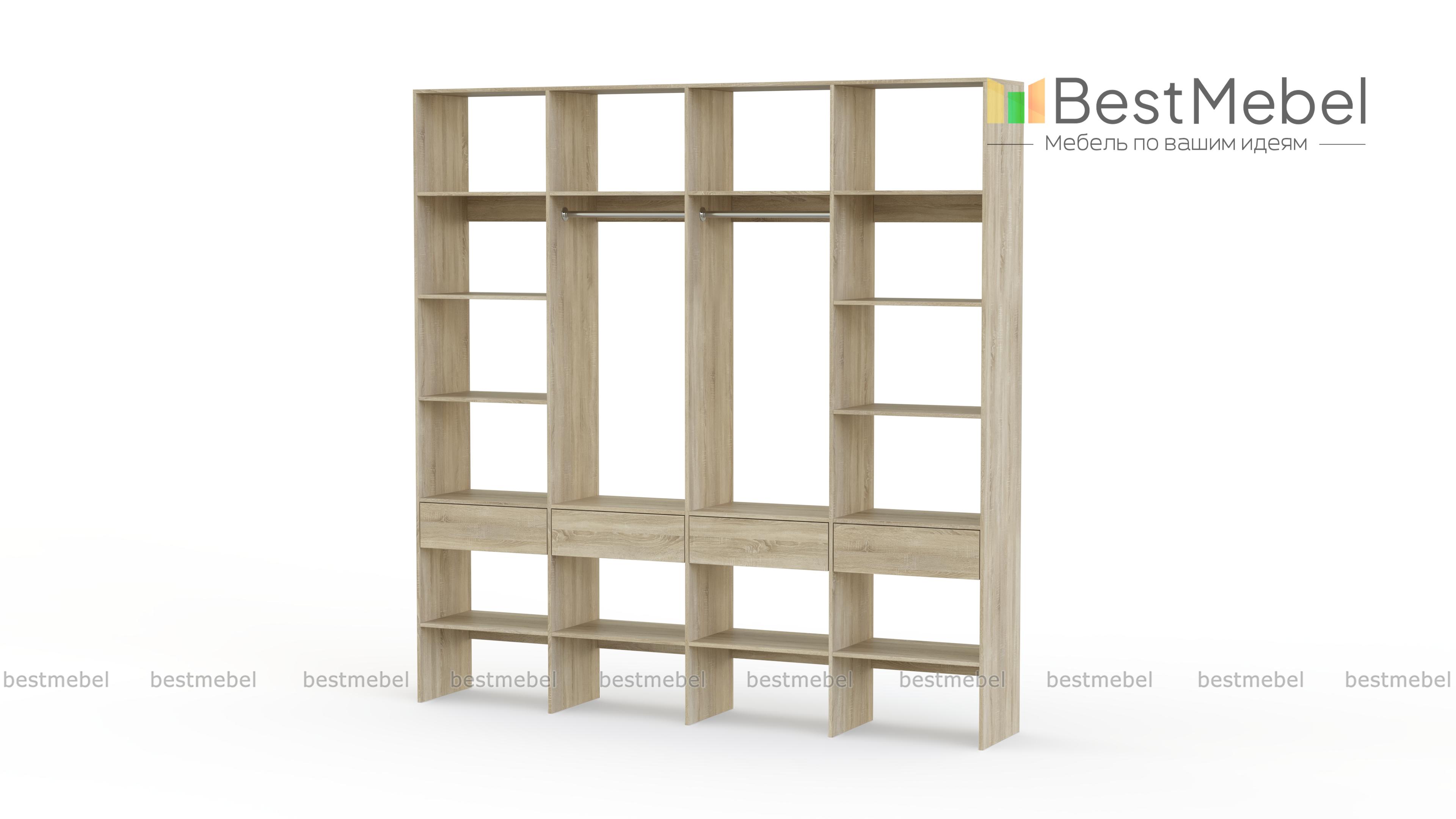 Стеллаж для одежды Мирта 60 BMS поможет вам с организацией хранения гардероба и бытовых вещей. Одежда, текстиль для дома, сезонные аксессуары и обувь будут всегда на виду и под рукой благодаря продуманной конструкции. Четырехсекционная модель оборудована двумя штангами в центре, расположенными по периметру полками и рядом из четырех выдвижных ящиков. Купить стеллаж для одежды Мирта 60 BMS в оттенках нашего каталога и любом удобном размере вы сможете на сайте интернет-магазина.