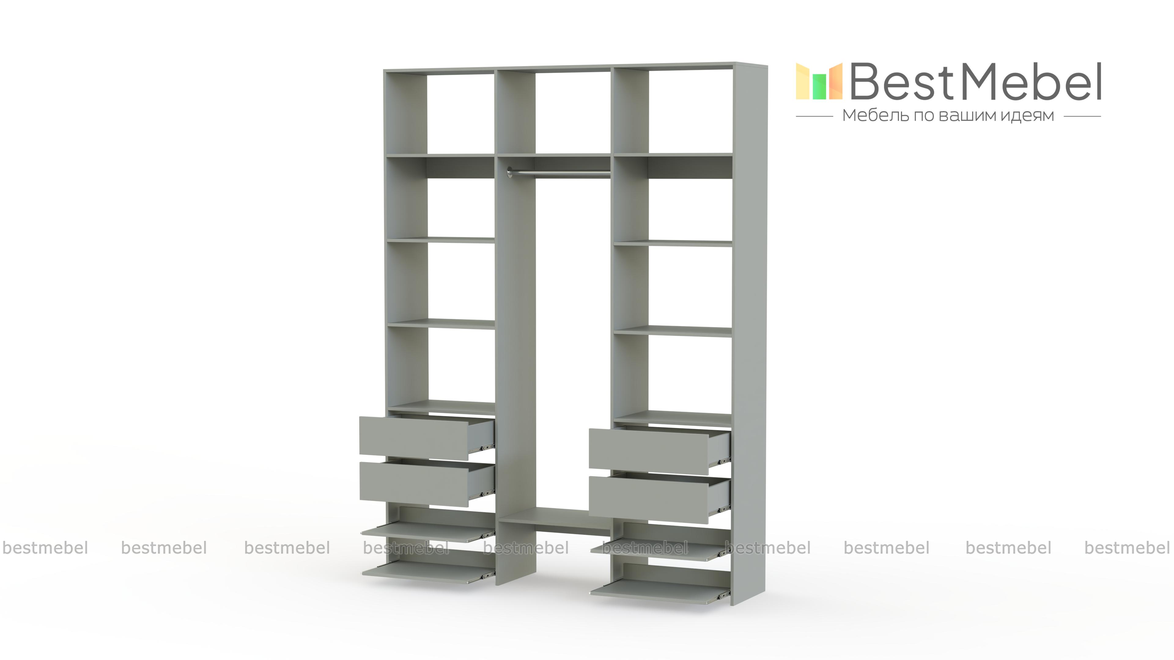 Конструкция С полками, С ящиками, Без задней стенки, Встраиваемая