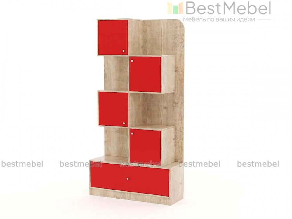 Стеллаж Леон 1 BMS дополнит интерьер современной детской удобной системой хранения для книг, игрушек, принадлежностей для творчества и многого другого. Модель оборудована широким выдвижным ящиком в основании и расположенными в шахматном порядке открытыми и глухими распашными секциями. Корпус в древесных тонах скомбинирован с яркими цветными фасадами на выбор. Купить стеллаж Леон 1 BMS и легко поддерживать в детской порядок вам всегда поможет наш интернет-магазин.