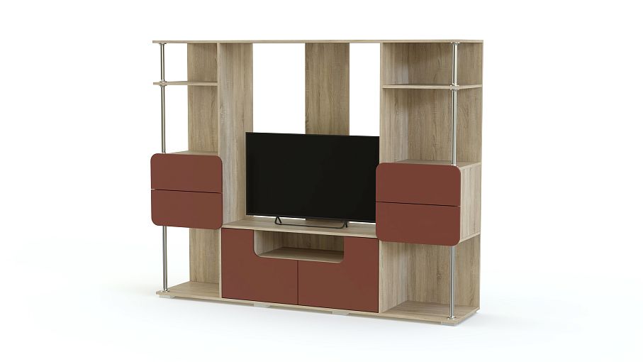Стенка МБ-7.1 BMS гармонично впишется в небольшие гостиные и студии благодаря компактным размерам и визуальной легкости. Модель современного дизайна с матовыми закругленными фасадами дополнит интерьеры в стиле минимализм и разместит ТВ, книги, предметы декора и разнообразные бытовые мелочи. Мини-стенка расположена на подиумном основании и оборудована тумбой с распашными отделениями и комбинированными стеллажами с открытыми полками и выдвижными ящиками на хромированных опорах. Купить стенку МБ-7.1 BMS по доступной цене приглашаем в наш интернет-магазин.