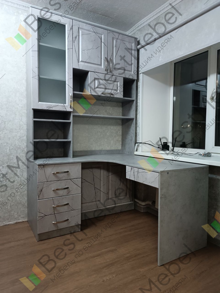 Компьютерный стол Классик 15 BMS гармонично впишется в интерьер молодежной комнаты и поможет обустроить комфортное рабочее место. Просторная угловая столешница совмещена с книжным шкафом, оборудованным выдвижными ящиками, отделением-купе, открытыми и застекленными полками. В оформлении модели эффектно скомбинированы светлые фасады с классической рамочной фрезеровкой и яркие ванильные акценты. Купить компьютерный стол Классик 15 BMS приглашаем к нам в интернет-магазин.