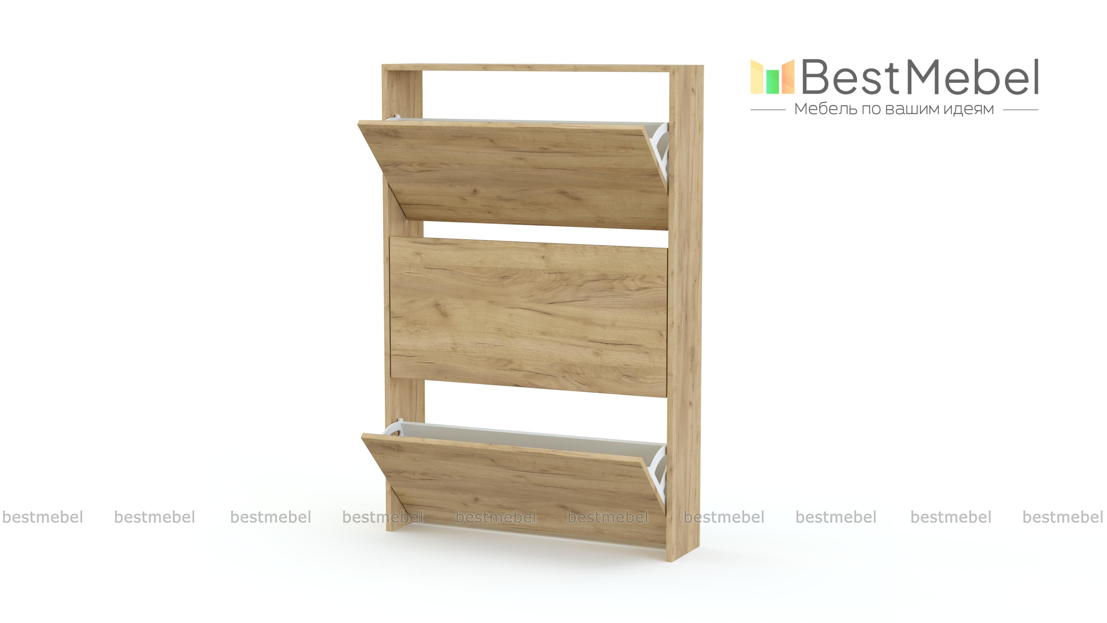 Обувница Анри 8 BMS имеет небольшую глубину и прекрасно подходит для маленьких прихожих. Компактная модель оборудована тремя откидными секциями для аккуратного хранения обуви, на верхней панели можно расположить мелкие аксессуары и декор. Выполненная из ламинированной ДСП конструкция прочная и долговечная, а с поверхностей легко удаляются загрязнения. Купить обувницу Анри 8 BMS вы сможете на сайте нашего интернет-магазина в любом оттенке из каталога.
