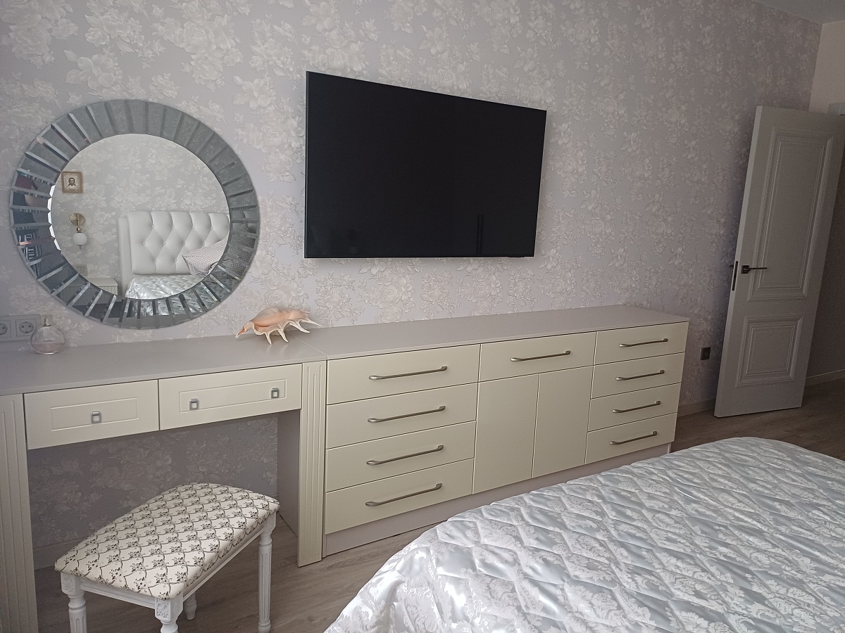 Красивый  и функциональный комод. Для меня быо важно  нужный размер и цвет. Потому что  приобретала  вместе с туалетным столиком. Ожидания  сбылись )))